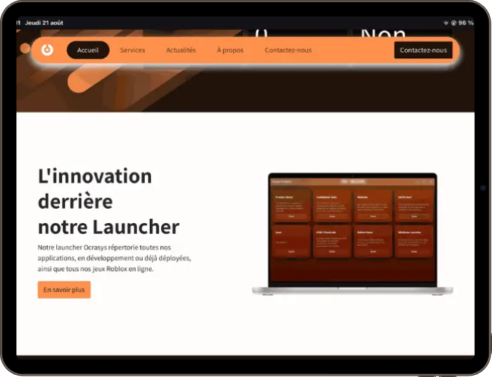 Chez Ocrasys, nous créons des expériences innovantes qui simplifient votre quotidien et améliorent votre productivité. Nos solutions allient technologie, design et performance pour transformer vos idées en réalité.